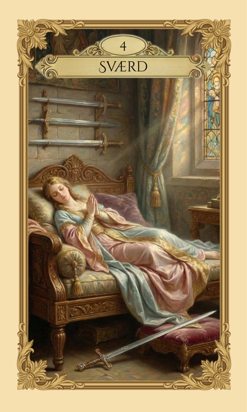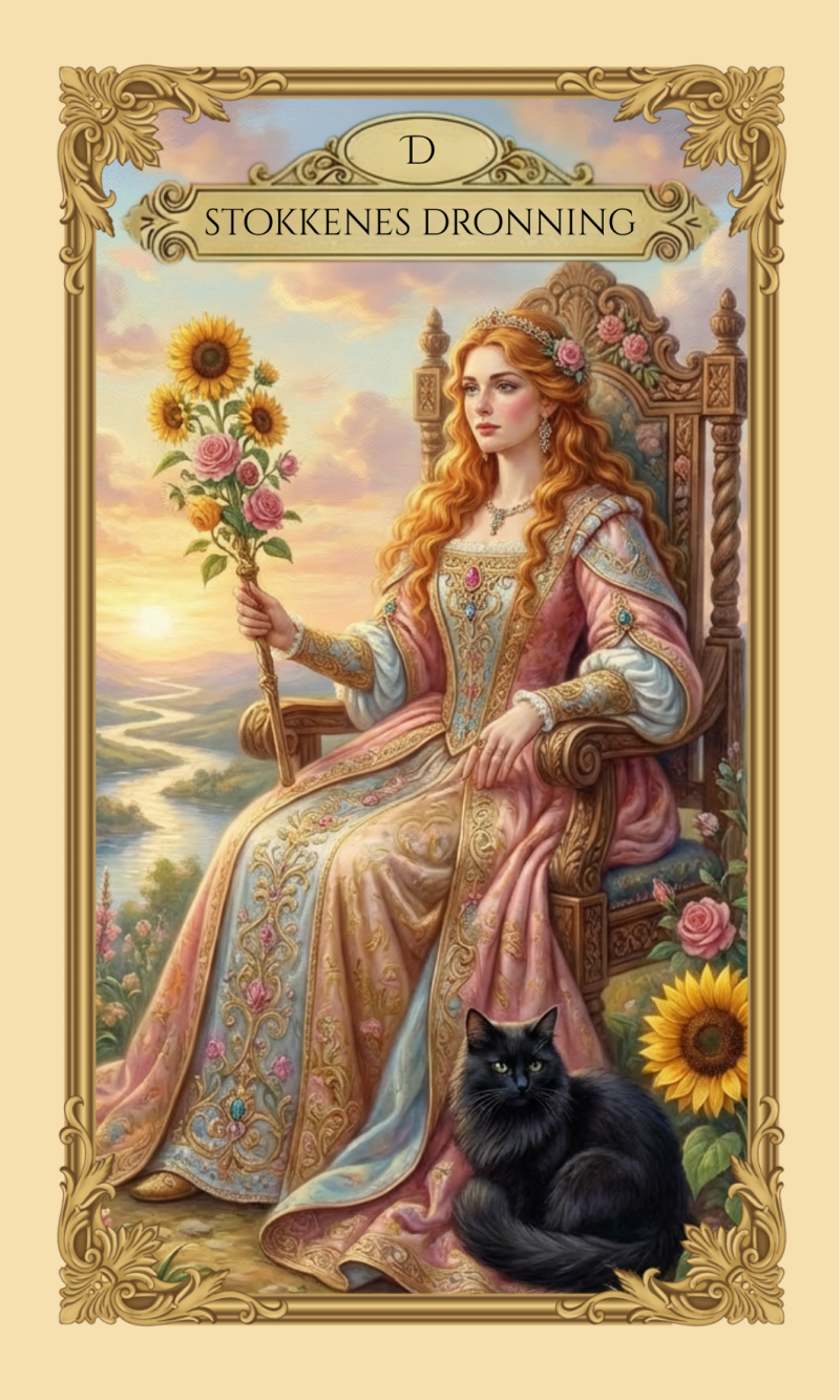 Det har været vigtigt for mig at bevare kortenes dybde og alvor, men pakke dem ind i et lys, der føles støttende og guddommeligt. Hvert kort er monteret i en ramme af guld og creme, som en hyldest til det lys, vi alle bærer i os selv – selv i mørket.